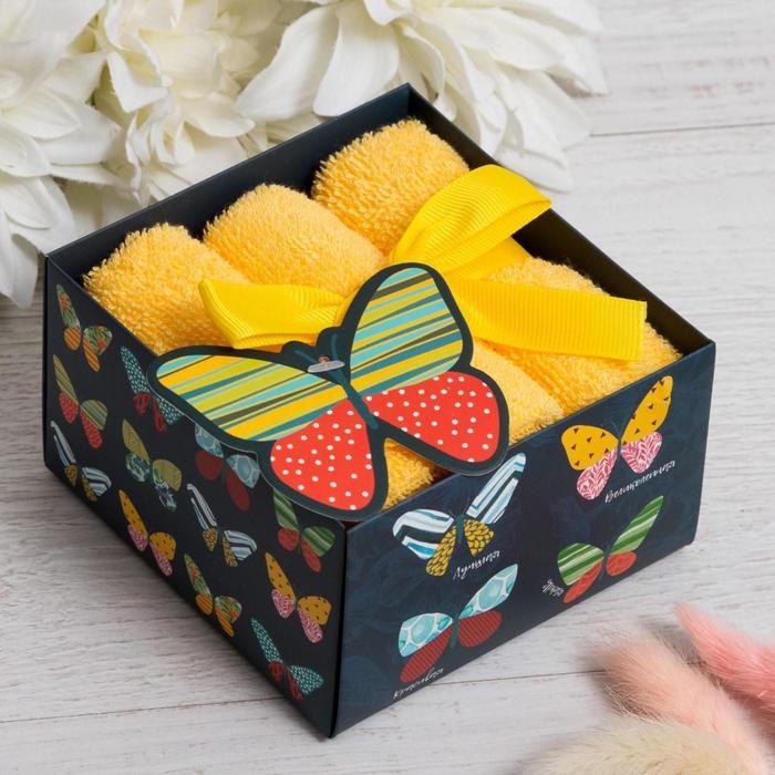 Набор махровых полотенец «Бабочки» 30×30 см — 3 шт, хлопок 340гр/м2