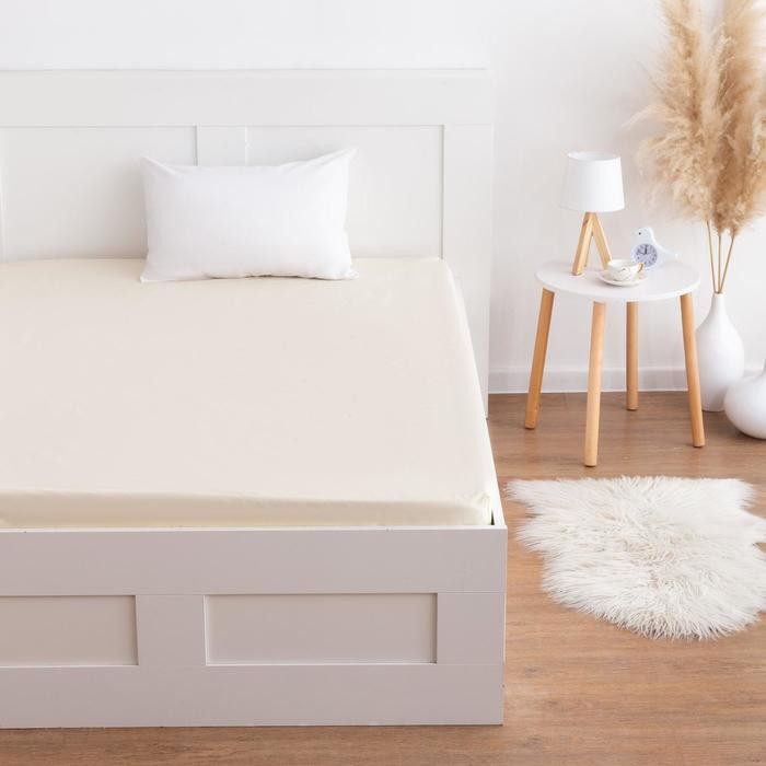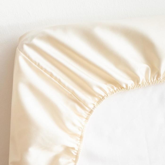 Простыня на резинке Этель 140*200*25 см, цв. бежевый, 100% хлопок, мако-сатин, 128 г/м²