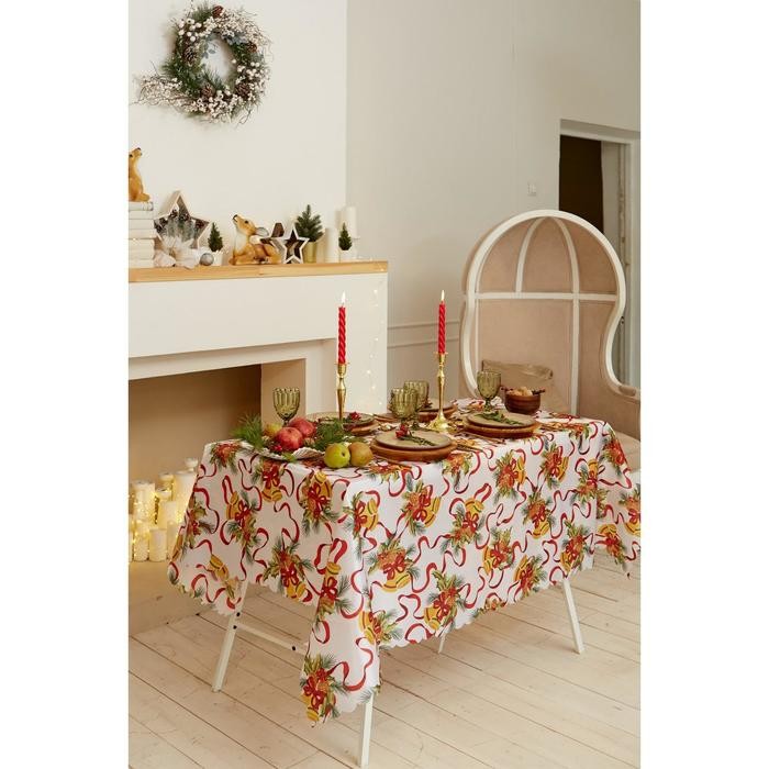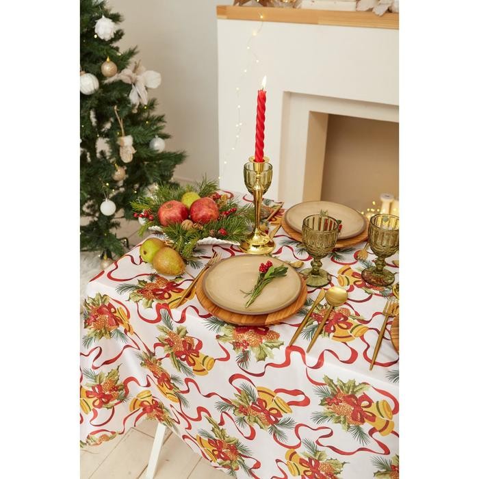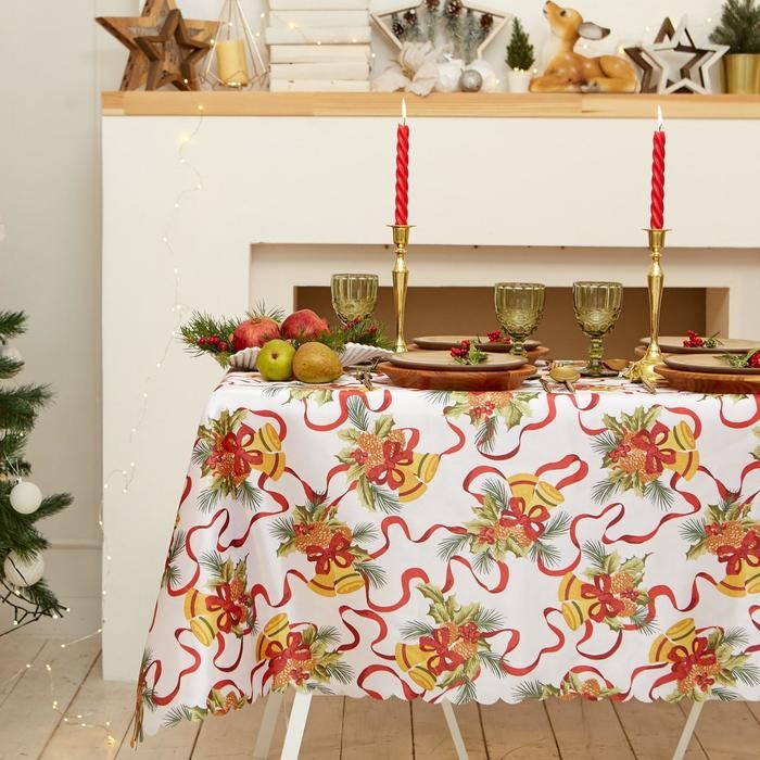 Скатерть Доляна «Новый год: Новогодние колокольчики» 145*180 +/- 2 см, 100% п/э
