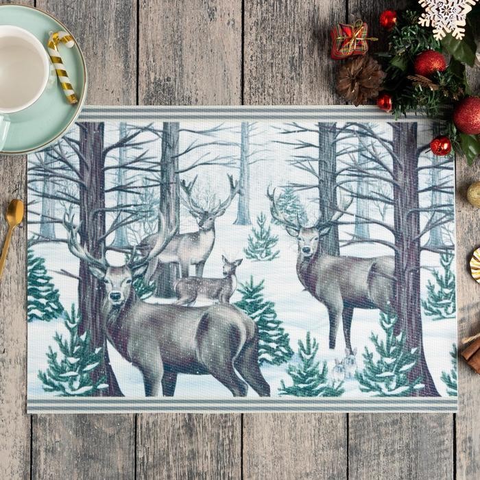 Новогодняя салфетка на стол «Сказочный лес» 40×29 см