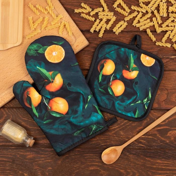 Кухонный набор Доляна «Апельсины» прихватка 17*17 см, варежка-прихватка 26*16 см, 100% п/э