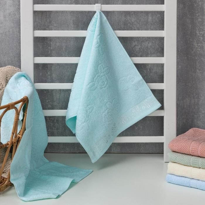Полотенце махровое Этель «Цветочные мотивы» цв.голубой, 34*72 см, 350 гр/м2, 100% хлопок