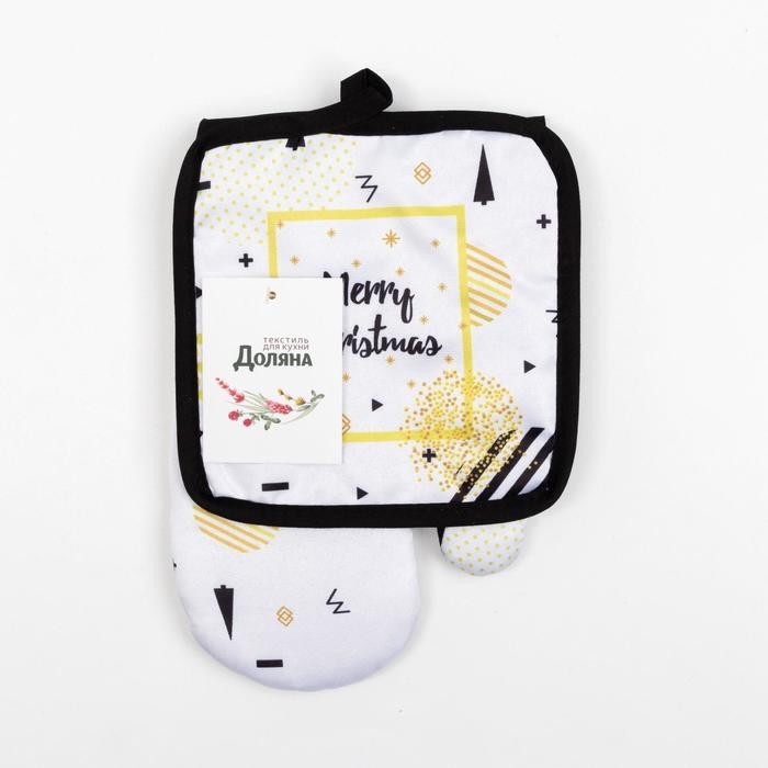 Кухонный новогодний набор Доляна Merry Christmas, прихватка 17*17 см, варежка 25*17 см,100% п/э