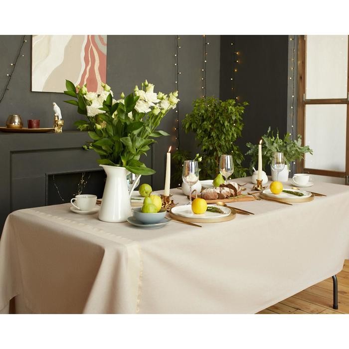 Скатерть «Этель» 110×165 см, цв. кофейный с золотой нитью, 100% хлопок, 163 г/м2