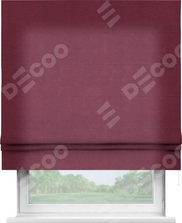 Римская штора производителя «Cortin», используется для проёма, пошита из ткани вельвет бордовый, артикул ткани 85553. Имеет универсальный механизм и подходит для монтажа: на потолок, на стену и в нишу.