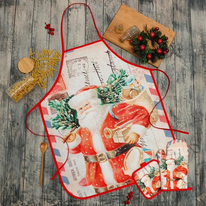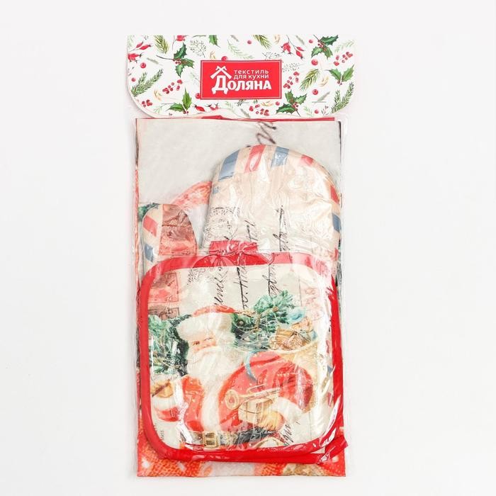 Кухонный новогодний набор Доляна"Новый Год», фартук 70×80 см, прихватка17х17см, варежка-прихватка 26х16см