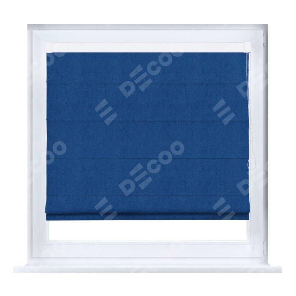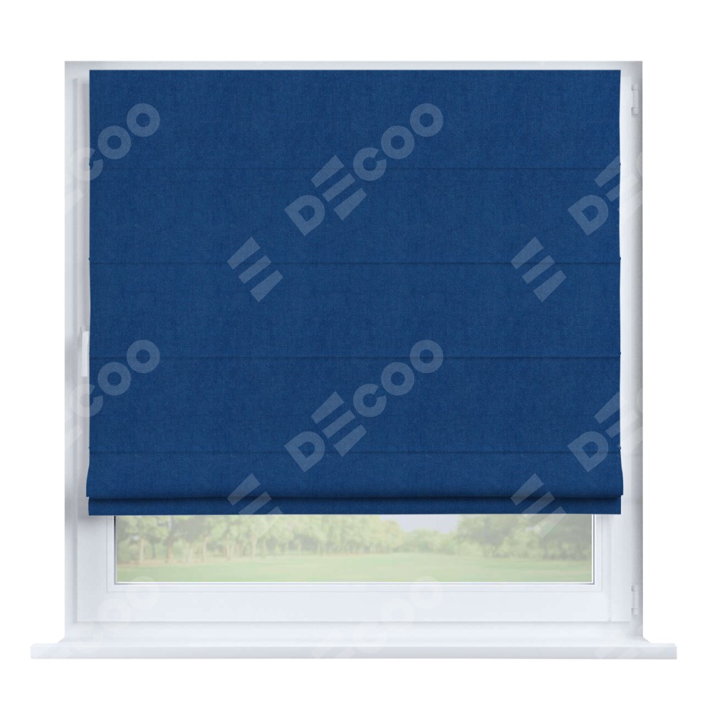 Римская штора производителя «Cortin», устанавливается на створку окна, пошита из ткани вельвет синий, артикул 85554. Штора шьётся по индивидуальным размерам, для данного типа римской шторы возможная ширина от 35 до 150 см., высота до 250 см.