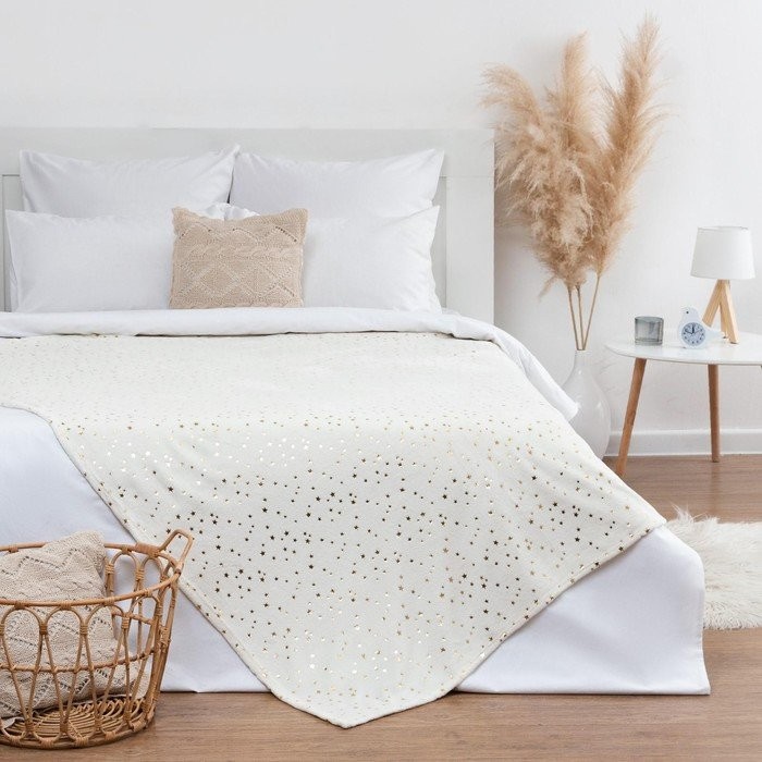Плед Этель «Золотые звезды» белый 150*200 см,100% п/э, корал-флис 220 гр/м2