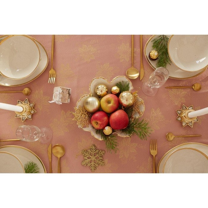 Скатерть Этель «Пуансеттия» цв.розовый, 142*180 +/-3 см, 115 ±10 гр,100% п/э