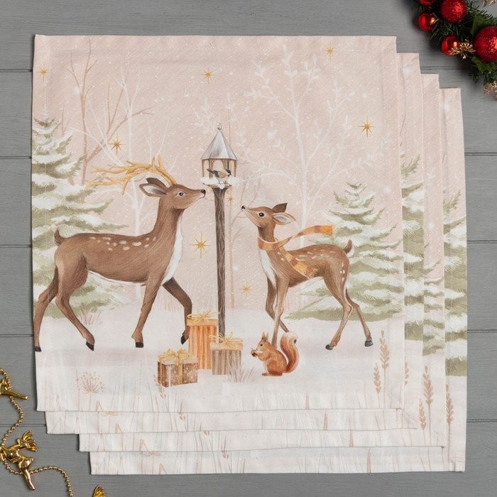 Набор салфеток «Этель» Christmas snowman 40х40см 4 шт, 100% хл, саржа 190 гр/м2