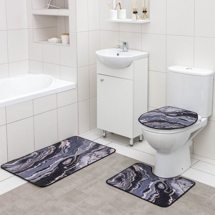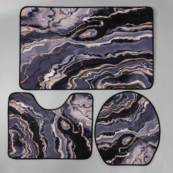Набор ковриков для ванны и туалета Доляна «Мрамор», 3 шт: 50×80, 50×40, 40×38 см