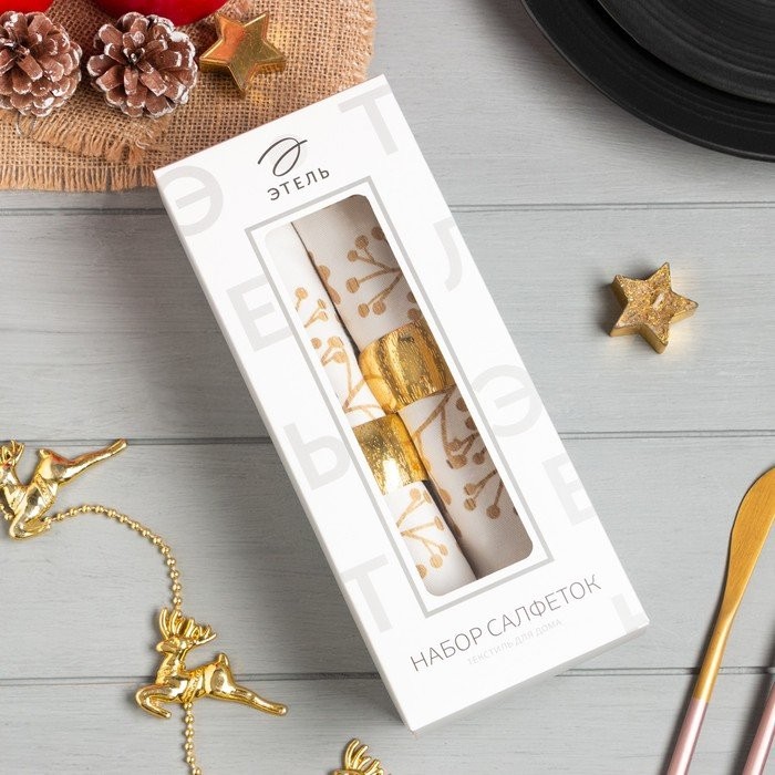 Набор салфеток с декорат. кольцами «Merry christmas " 45×45 см — 2 шт, 100% хл, саржа 190гр/