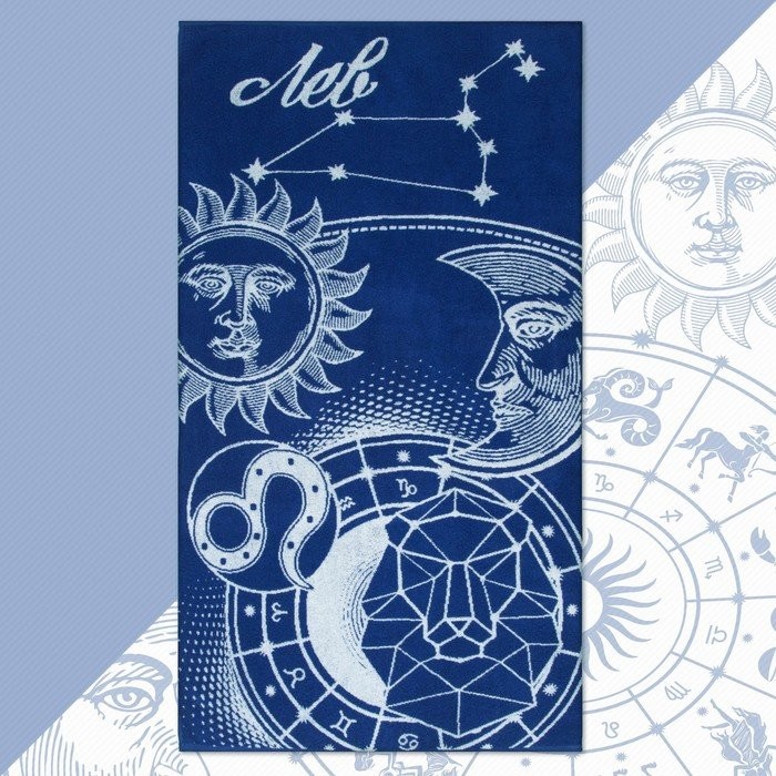 Полотенце махровое Этель «Знаки зодиака: Лев» синий, 67×130 см, 100% хлопок, 420гр/м2
