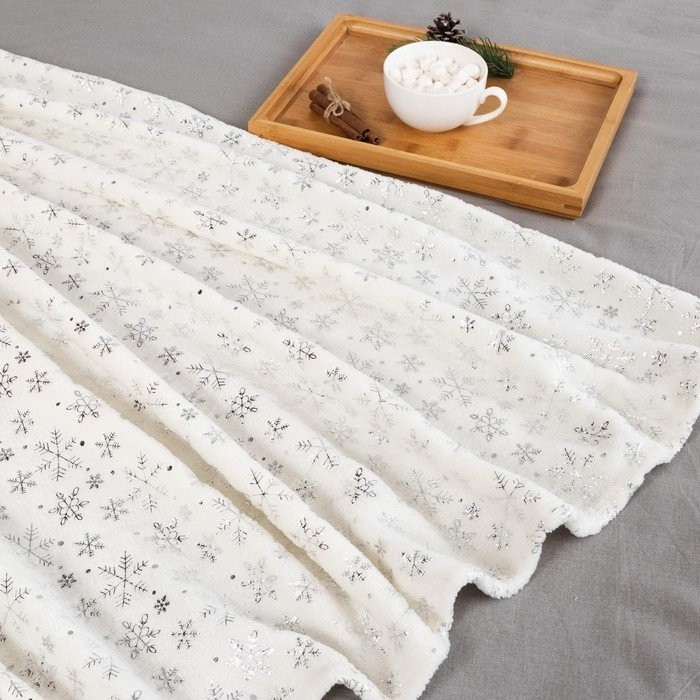 Плед Этель «Серебряные снежинки» 150*200 см,100% п/э, корал-флис 220 гр/м2
