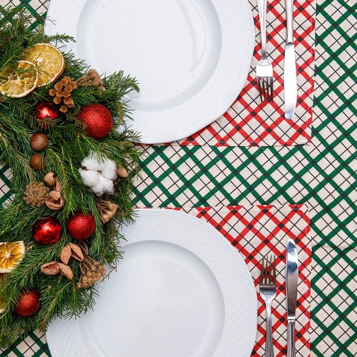 Набор салфеток 35×35 Мари Санна Клетка 9266−2, красный, рогожка, 4 шт