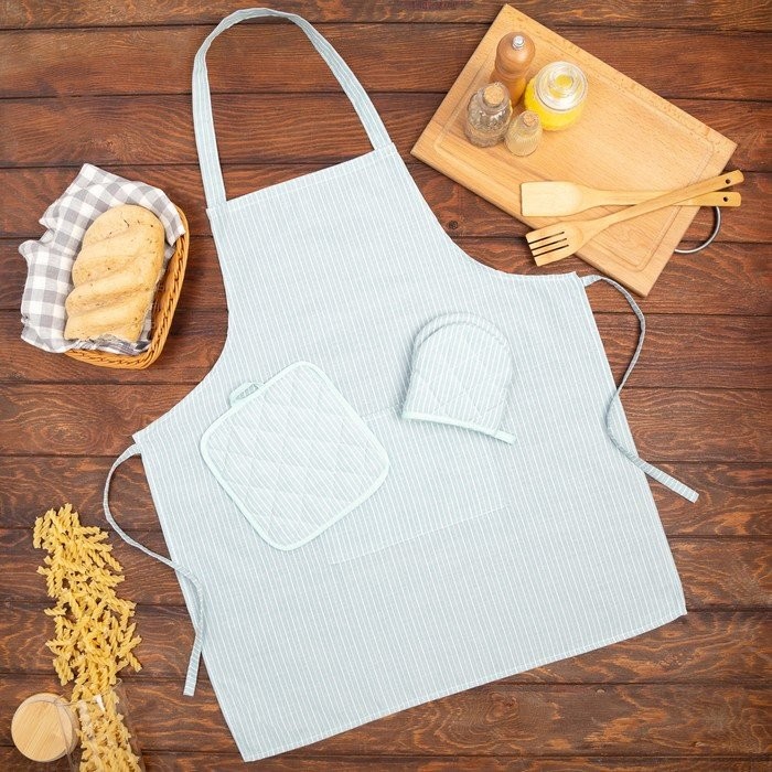Кухонный набор «Полосы» фартук 60х70см, прихватка 20х20см, варежка 12х15см, цвет зеленый, 50%п/э, 50%хл
