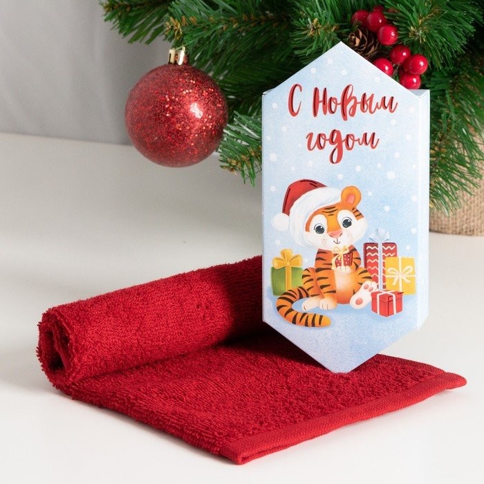 Новогоднее полотенце махровое Этель «С Новым годом» 30×30 см, 100 хл 340г/м2