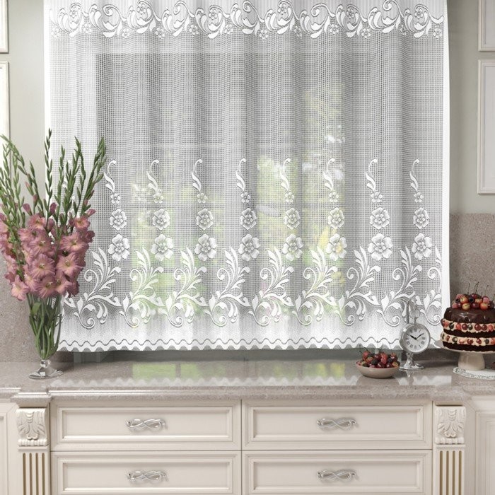 Тип тюли: Готовый, Короткий, С цветами