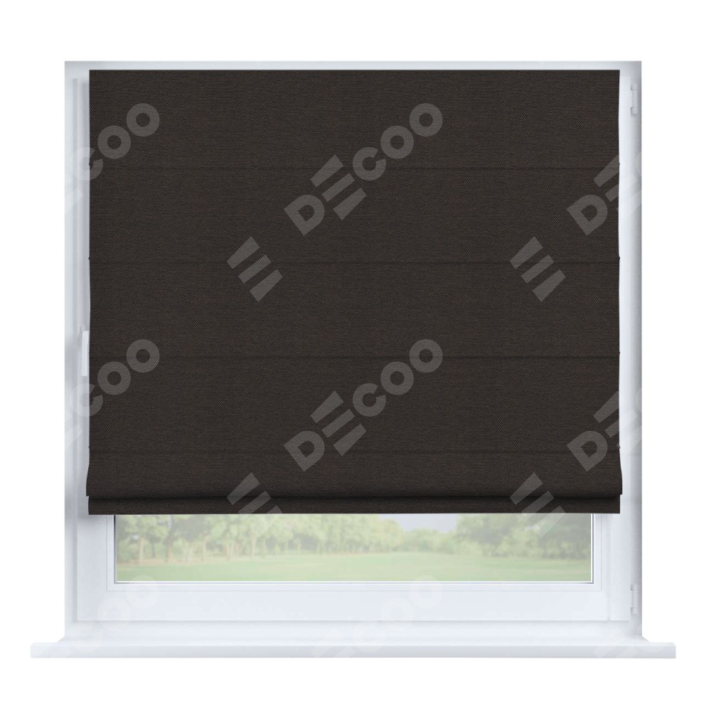 Римская штора производителя «Cortin», устанавливается на створку окна, пошита из ткани лён димаут венге, артикул 85410. Штора шьётся по индивидуальным размерам, для данного типа римской шторы возможная ширина от 35 до 150 см., высота до 250 см.