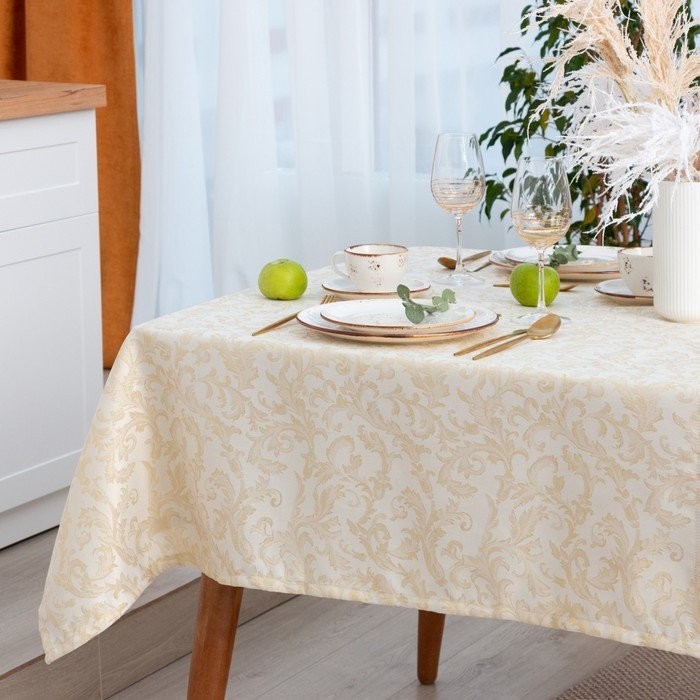 Скатерть Этель «Venzel» цв.золото, 142*220 +/-3 см, 115 ±10 гр,100%
