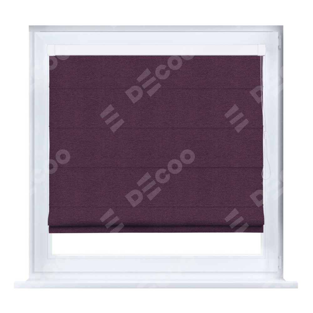 Римская штора кассетного типа, производителя «Cortin», устанавливается только на пластиковые окна и прилегает к стеклопакету, пошита из ткани лён димаут фиолетовый, артикул 8817.