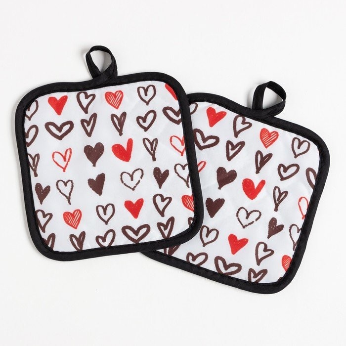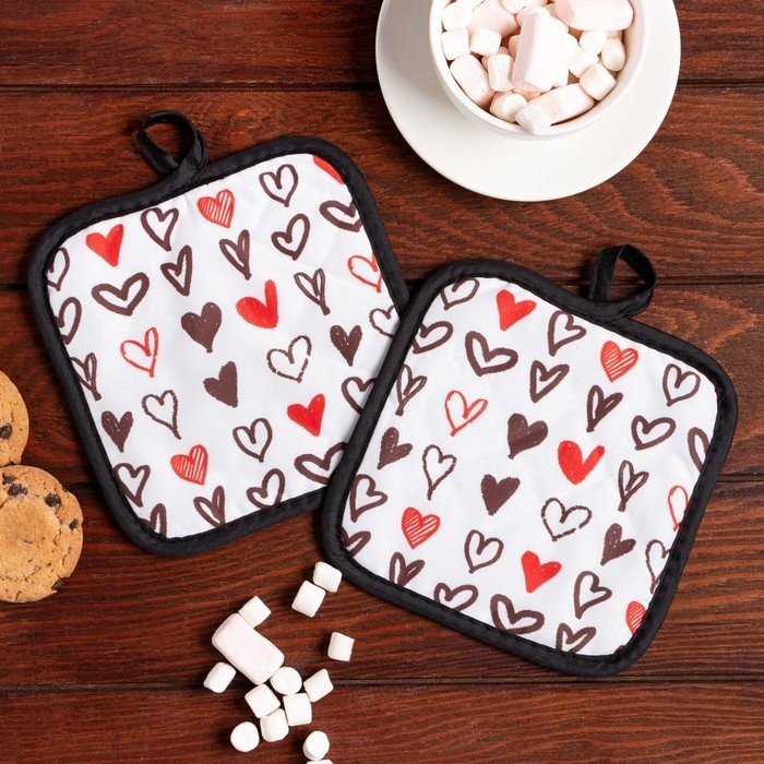 Кухонный набор (2 предмета) Этель LoveLife «Сердечки», прихватка 17×17 см — 2 шт, 100% п/э