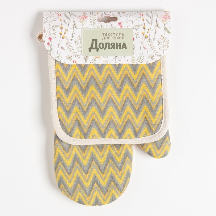 Кухонный набор (2 предмета) Доляна «Зигзаги», прихватка 17×17 см, варежка 26×16 см, 100% п/э