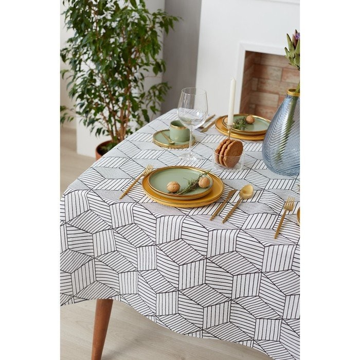 Скатерть Доляна 145х145см, Тренд цв.белый, 100%пэ, рогожка 200 гр/м