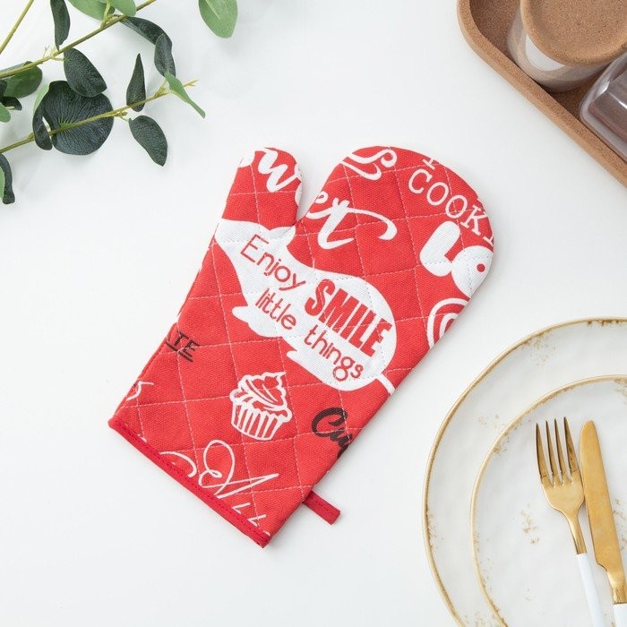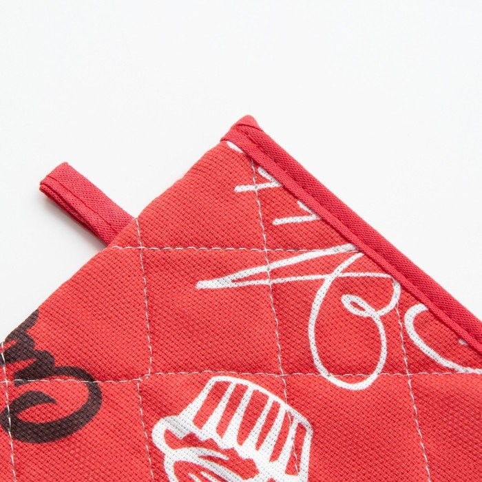 Прихватка-руковичка Мари Санна Леттеринг, красный, рогожка