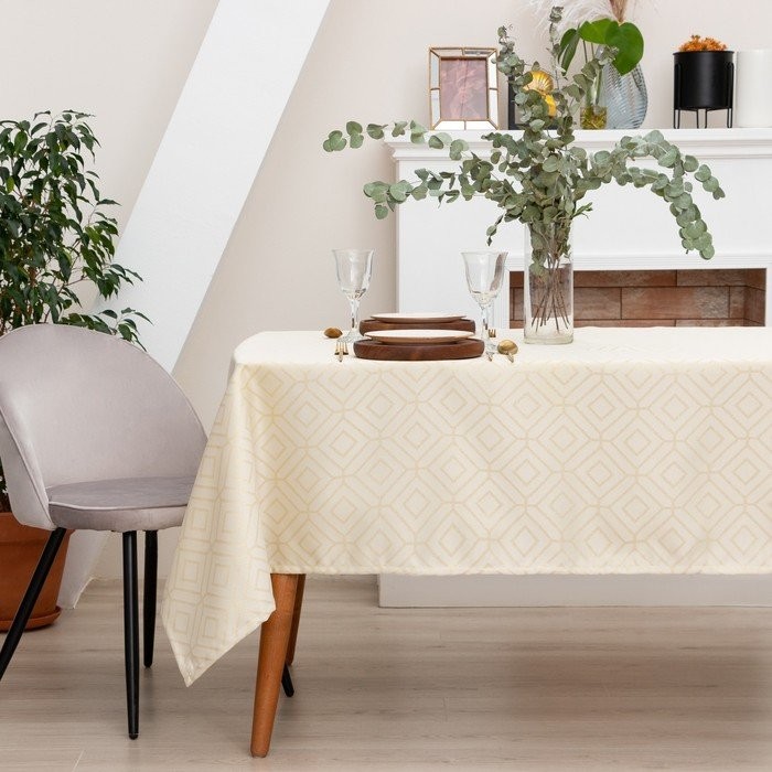 Скатерть Этель «Ромбы» цв.бежевый, 142*110 +/-3 см, 115 ±10 гр,100% п/э