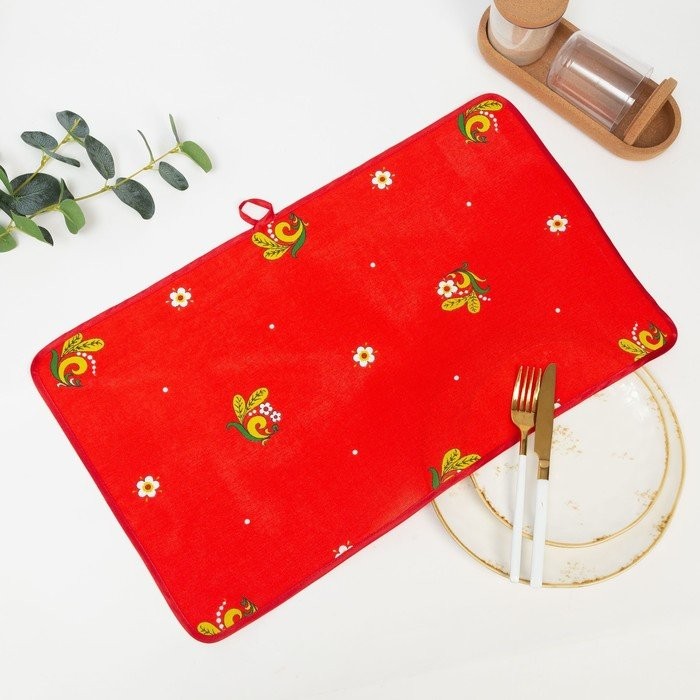 Полотенце 35*60 см, Хохлома-102, красный, 160 гр/м хл 50%, лен 50%