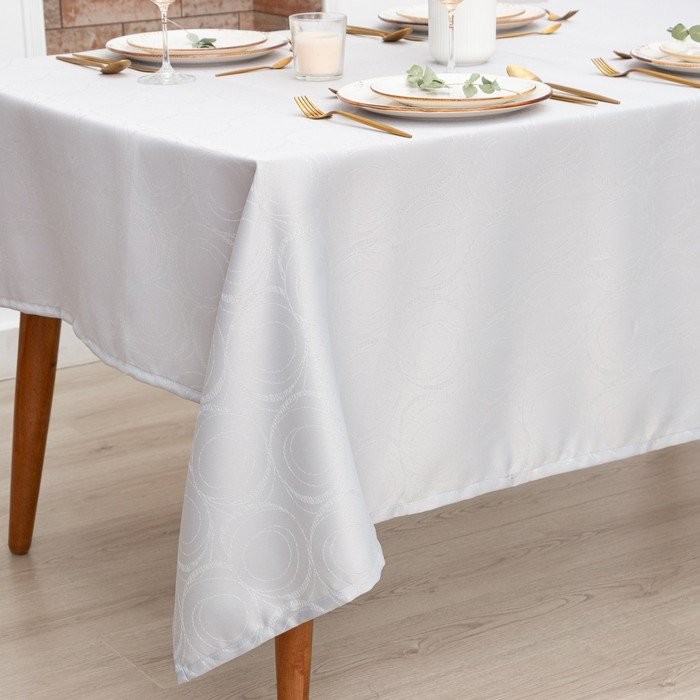 Скатерть Этель «Круги» цв.серебро, 142*180 +/-3 см, 115 ±10 гр,100% п/э