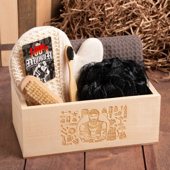 Набор подарочный Этель «100% мужик» полотенце и аксс (6 предм)