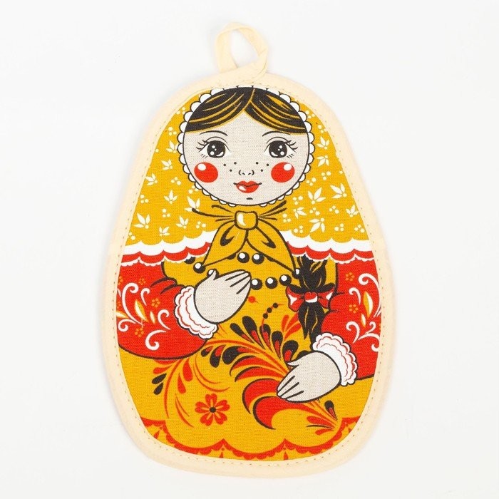 Набор кухонный Девица красавица-хохлома полотенце 45×60 см, прихватка 19×16 см, полулен,