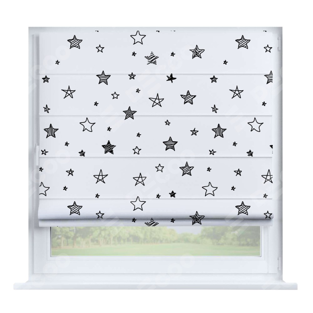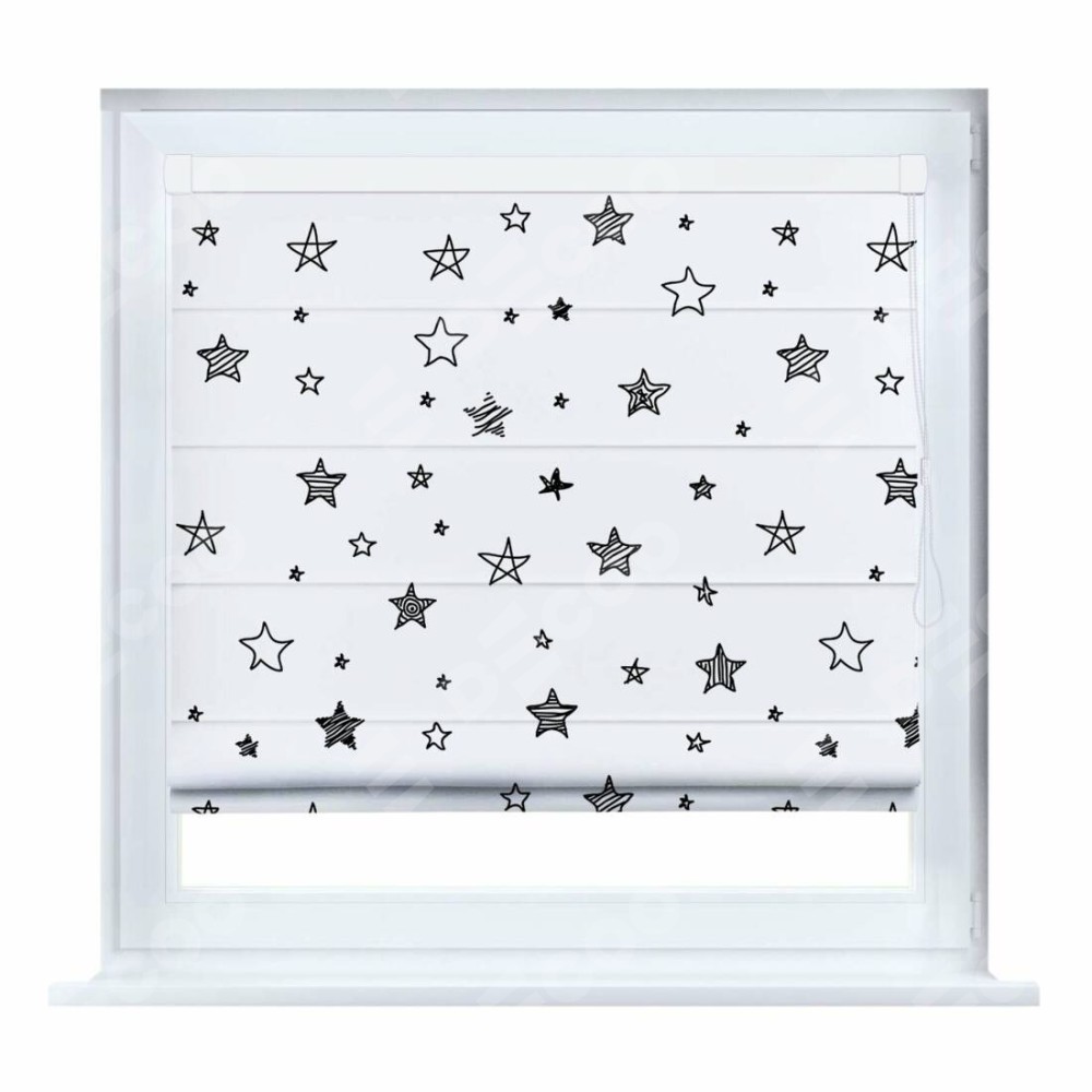 Римская штора производителя «Cortin», устанавливается на створку окна, пошита из ткани блэкаут с нанесением сублимационной печати «Звёзды». Штора шьётся по индивидуальным размерам, для данного типа римской шторы возможная ширина от 35 до 150 см., высота до 250 см.