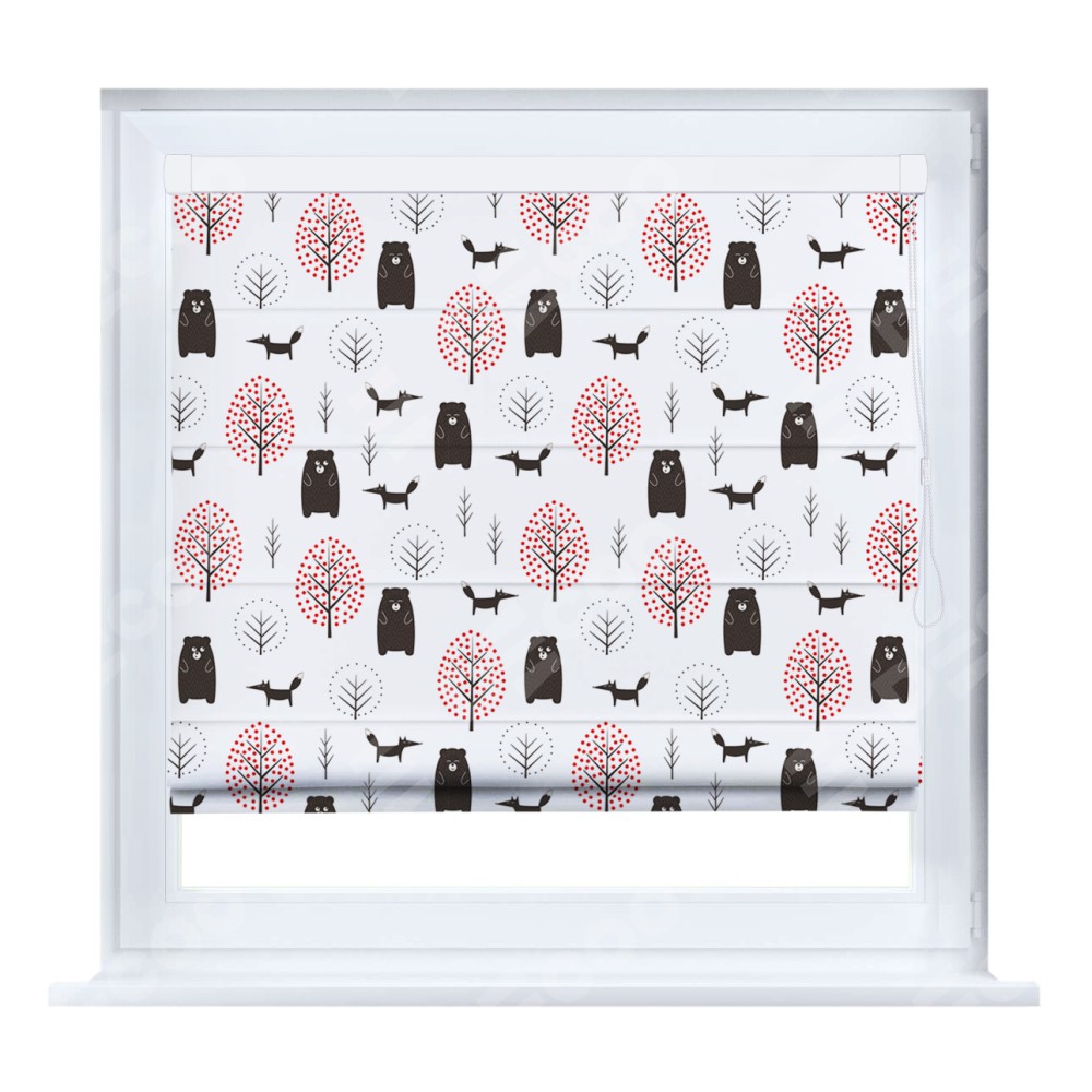 Римская штора производителя «Cortin», устанавливается на створку окна, пошита из ткани блэкаут с нанесением сублимационной печати «Сканди лес». Штора шьётся по индивидуальным размерам, для данного типа римской шторы возможная ширина от 35 до 150 см., высота до 250 см.