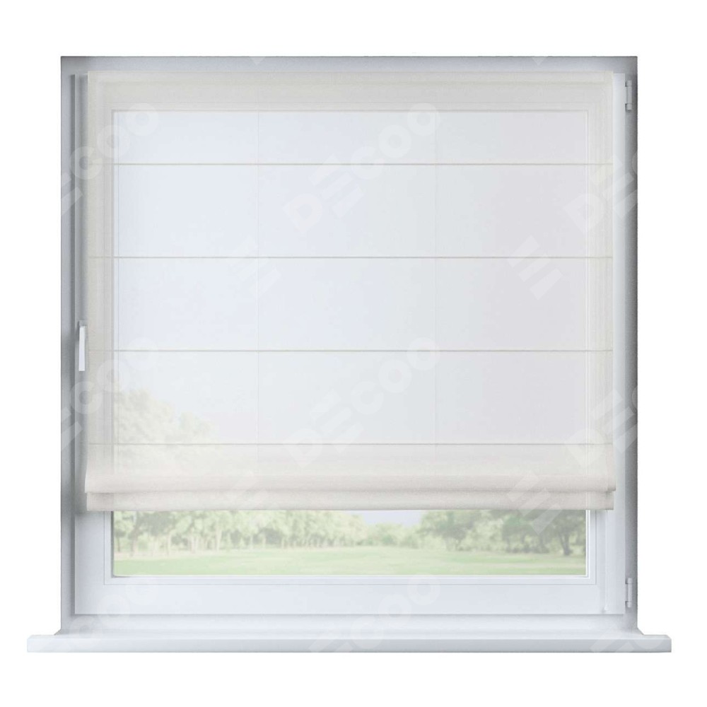Римская штора производителя «Cortin», устанавливается на створку окна, пошита из ткани тюль шампань, артикул V-02. Штора шьётся по индивидуальным размерам, для данного типа римской шторы возможная ширина от 35 до 150 см., высота до 250 см.