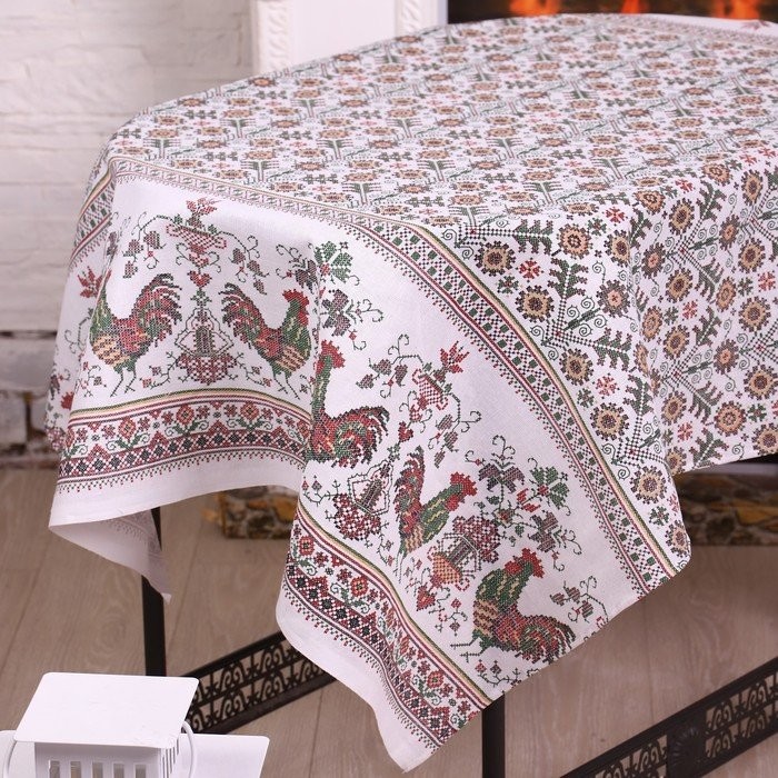 Скатерть 110×150 см «Петушок», зеленый, рогожка, хл 100%