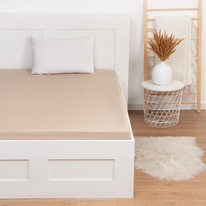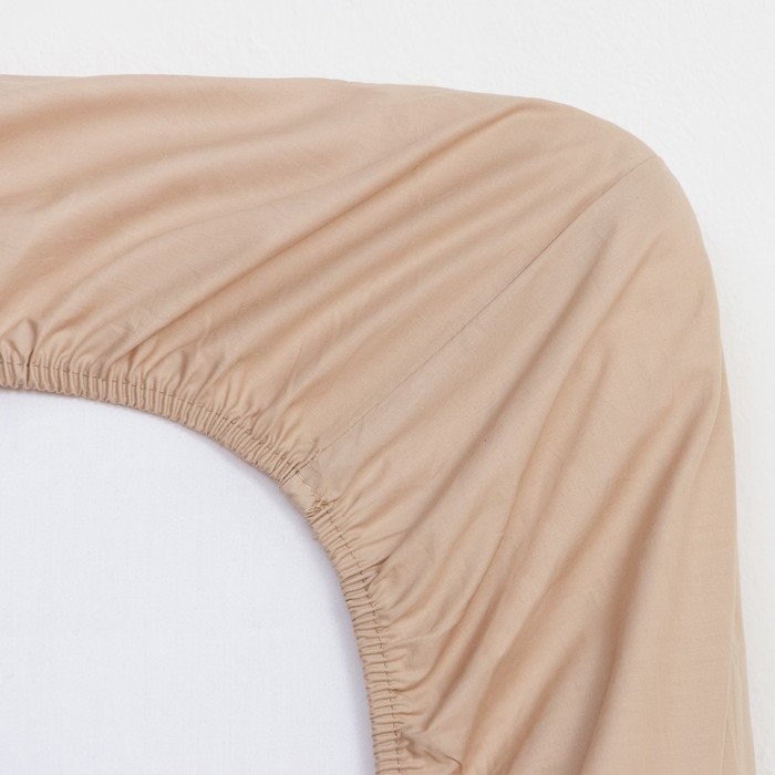 Простыня на резинке «Этель» 180х200×25 см, бежевый, 100% хлопок, перкаль