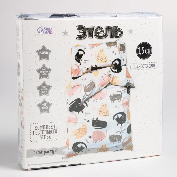 Постельное бельё Этель 1.5 сп Cat party, 143*215 см, 150*214 см, 50*70 см -1 шт,100% хлопок, бязь