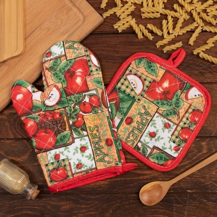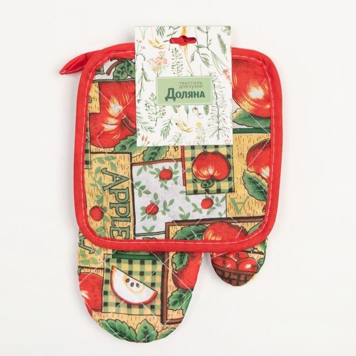 Кухонный набор (2 предмета) Доляна «Яблоня», прихватка 16×16 см, рукавица 25*16 см, 100% п/э