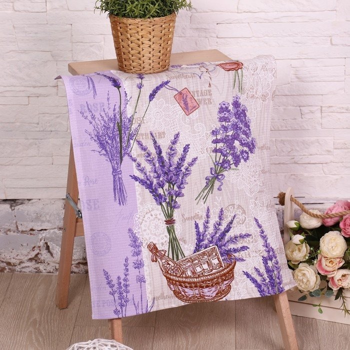 Полотенце 50×60 см, Лето в провансе, вафля, 170 гр/м2, хлопок 100%