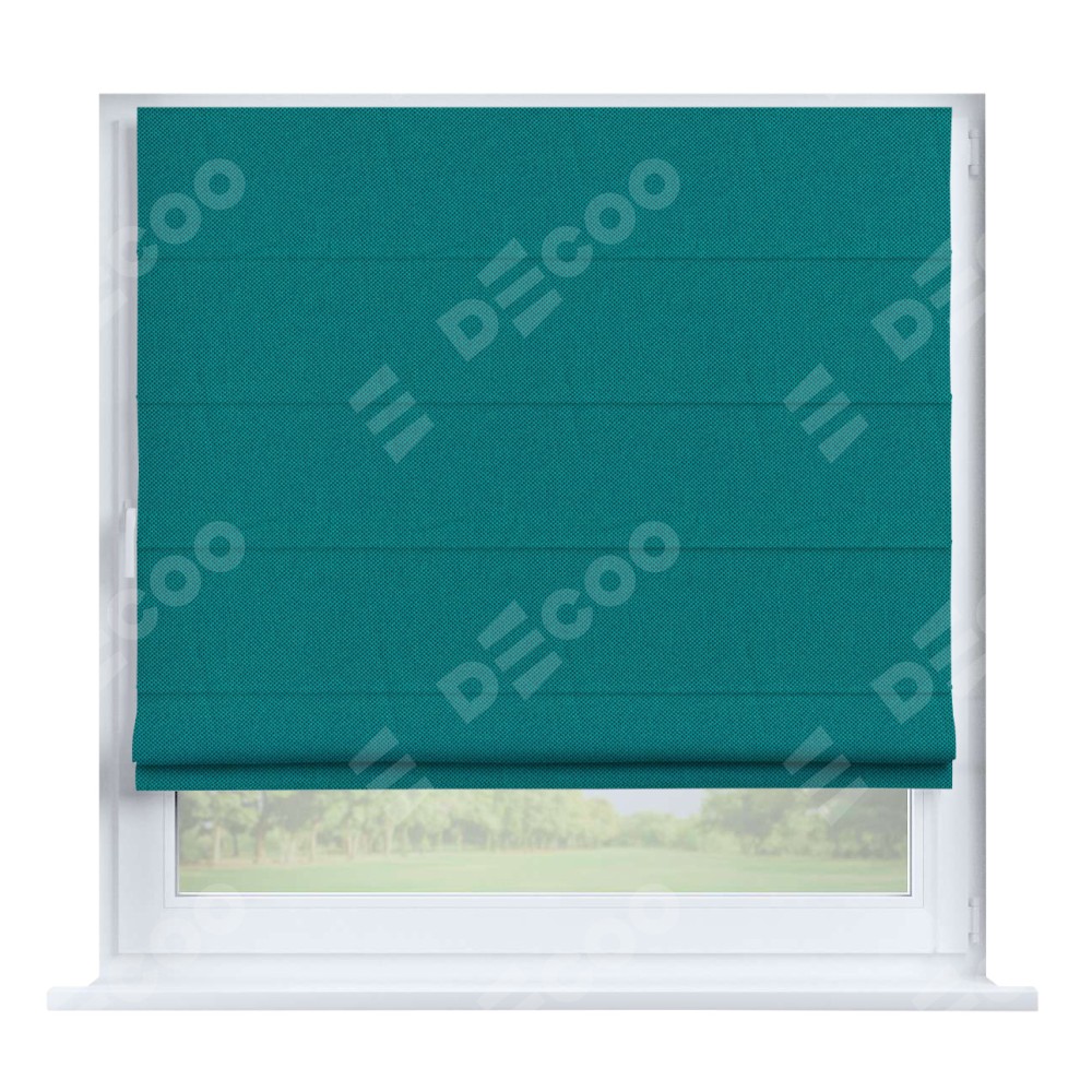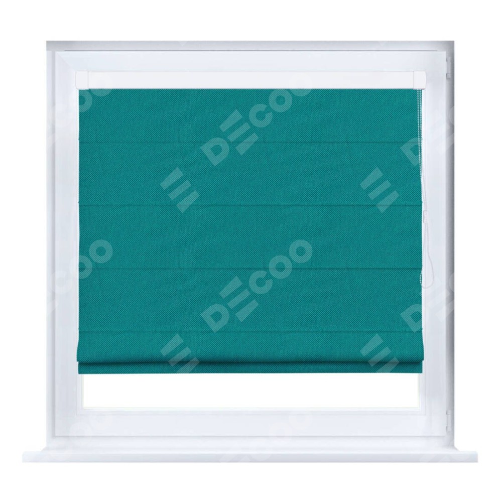 Римская штора производителя «Cortin», устанавливается на створку окна, пошита из ткани лён димаут тёмно-бирюзовый, артикул 318. Штора шьётся по индивидуальным размерам, для данного типа римской шторы возможная ширина от 35 до 150 см., высота до 250 см.