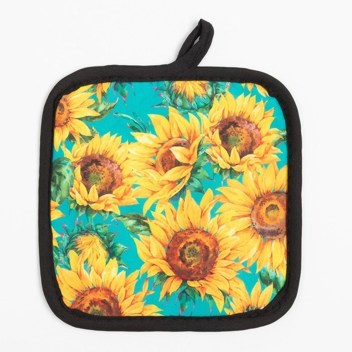 Кухонный набор (2 предмета) Этель «Подсолнухи», прихватка 17×17 см, варежка 26×16 см, 100% п/э