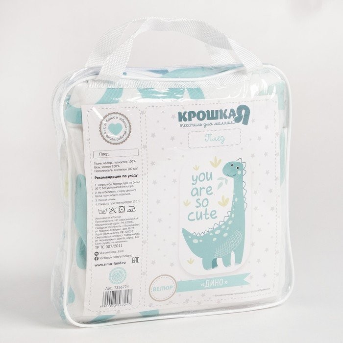 Одеяло-плед Крошка Я «Дино» 90×140 см, велюр, синтепон 100г/м2