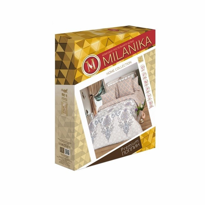 Постельное бельё 2сп Миланика Медальон 175х217см, 200х217см, 70х70см 2 шт, поплин 117г/м, хлопок 100%
