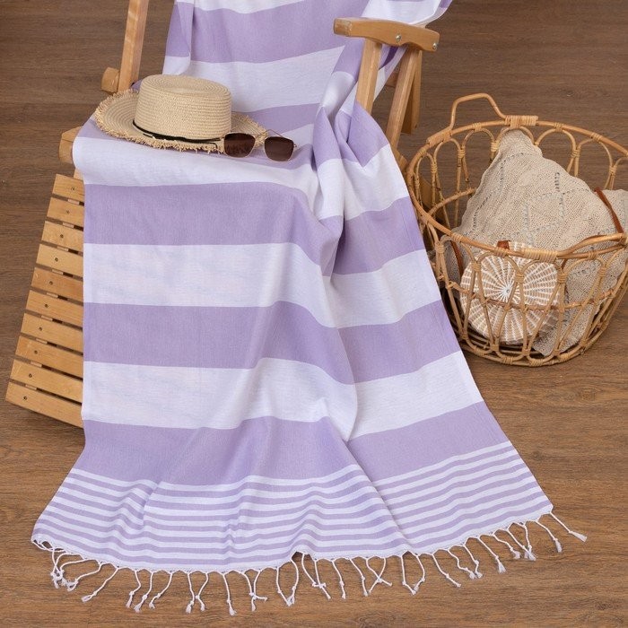 Пештемаль для пляжа, бани, сауны «Фортуна» 100×180 см, сиреневый