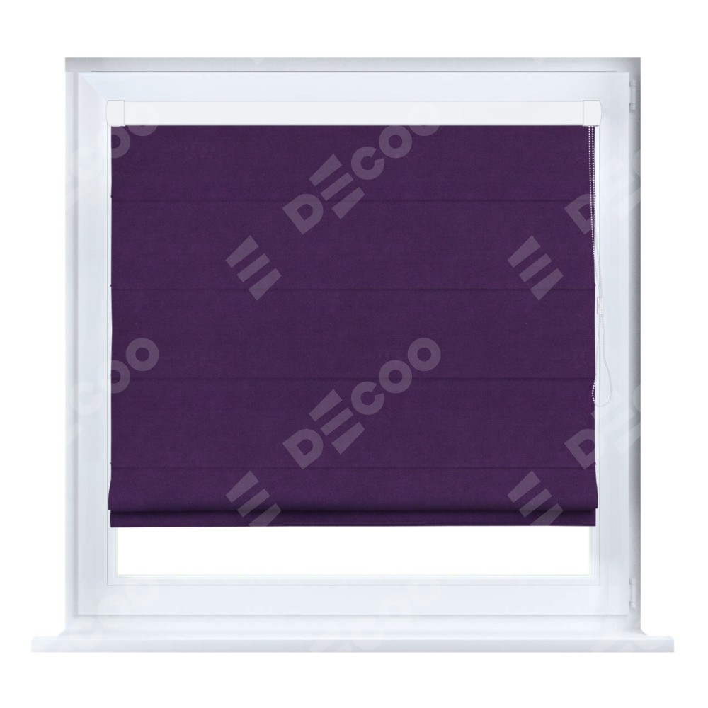 Римская штора кассетного типа, производителя «Cortin», устанавливается только на пластиковые окна и прилегает к стеклопакету, пошита из ткани вельвет тёмно-фиолетовый, артикул 17753.