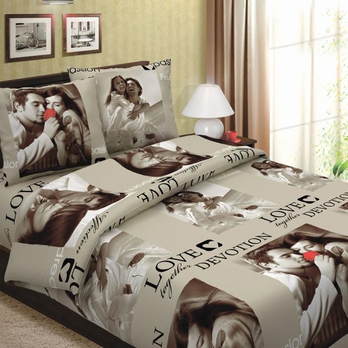 Постельное бельё «Традиция: Сладкая парочка беж», евро, 200×217 см, 220×240 см, 70×70 см. — 2 шт., бязь 125г/м хл.100%