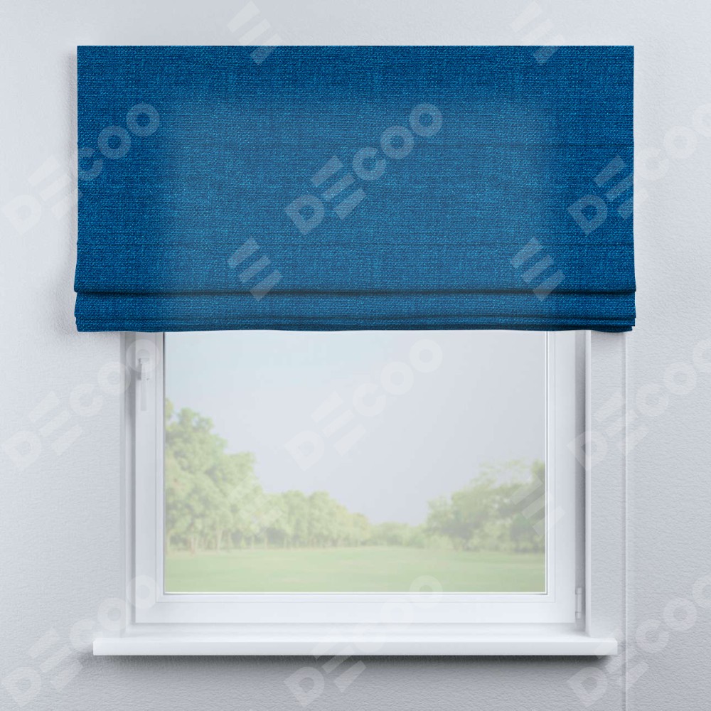 Римская штора производителя «Cortin», используется для проёма, пошита из ткани лён синий, артикул ткани 63742. Имеет универсальный механизм и подходит для монтажа: на потолок, на стену и в нишу.